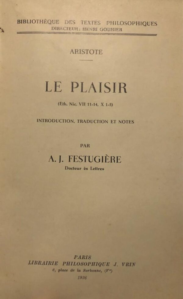 Le plaisir. Introdução, tradução. Comentário por A. J. Festugiére.