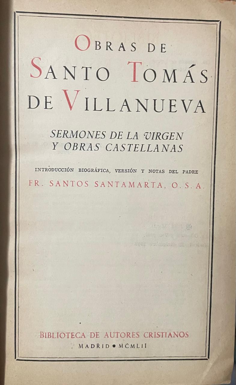 Obras de Santo Tomás de Villanueva. Sermones de la Virgen y obras castellanas.